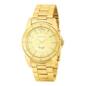 Este llamativo reloj INVICTA de la colección Pro Diver está impulsado por un movimiento Quarzo preciso, con 0,06 quilates de diamantes genuinos y una caja de oro macizo. Su cara está decorada con una esfera metálica dorada y protegida por un sólido cristal mineral. Una banda de acero inoxidable dorada completa este reloj que puede resistir el agua hasta 200 m.