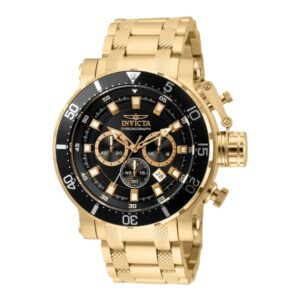 Este impresionante reloj INVICTA Venom cuenta con un movimiento de cuarzo preciso y una caja de acero y oro. Su carátula metálica dorada, azul y metálica está encerrada por un cristal mineral altamente protector. Este reloj está rematado con una banda de acero resistente y ofrece una resistencia al agua de 100 m.